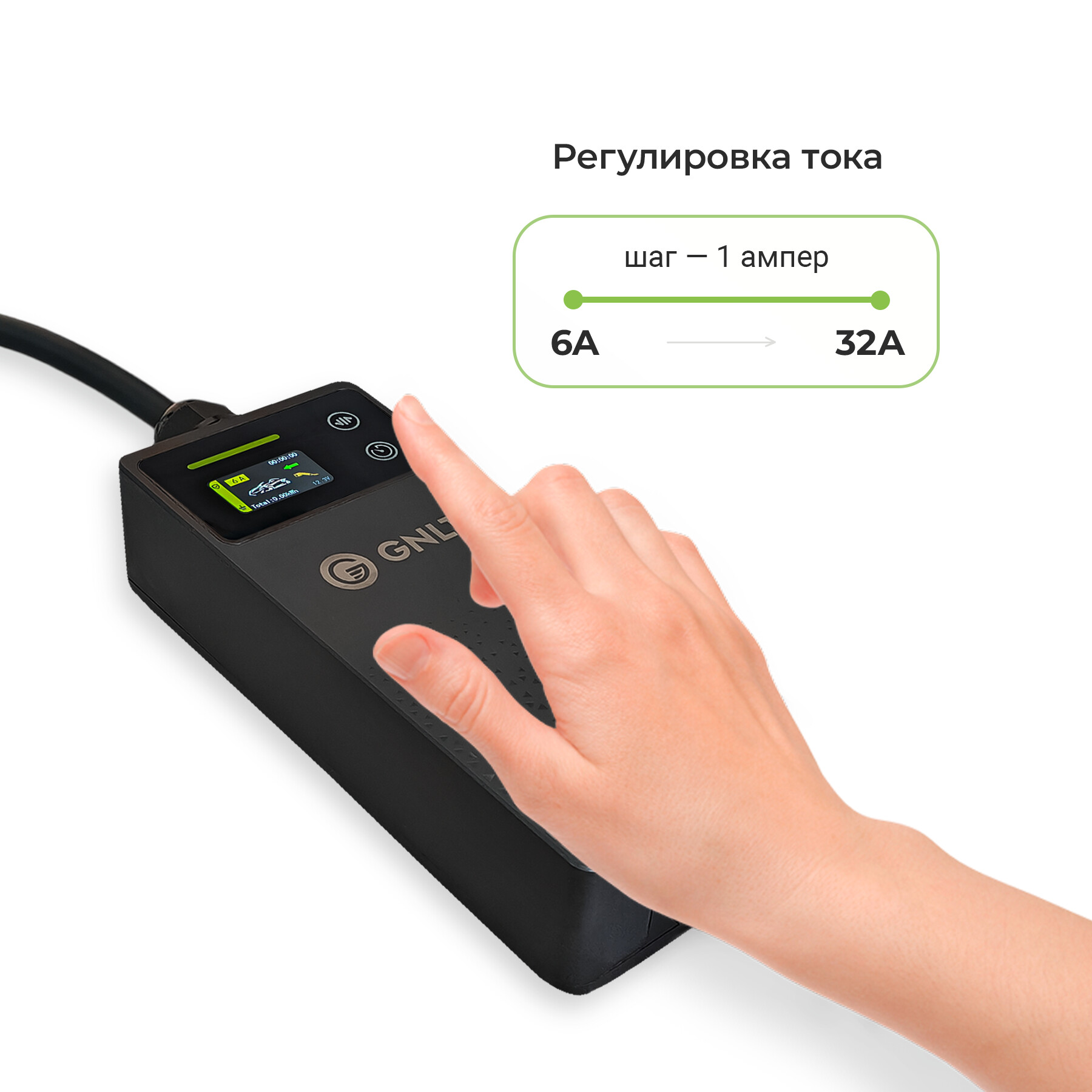 Одна из важных полезных функций — возможность вручную настраивать силу тока. Диапазон составляет от 6 до 32 ампер с шагом в 1 ампер. И это не просто галочка в характеристике устройства, а реально рабочий инструмент.